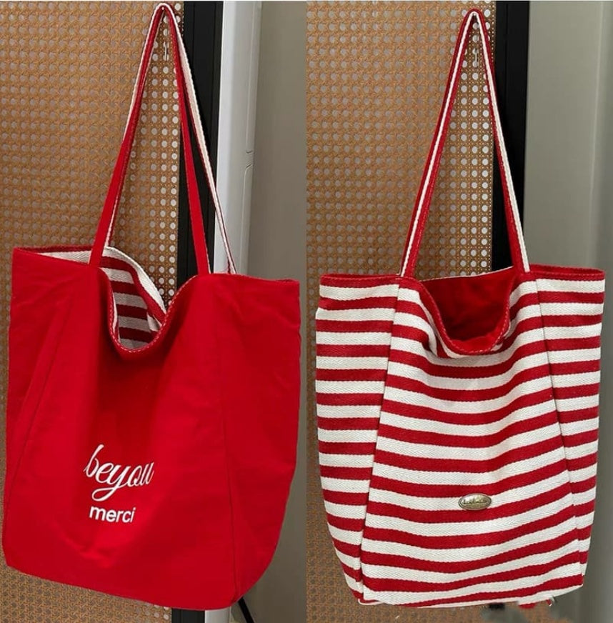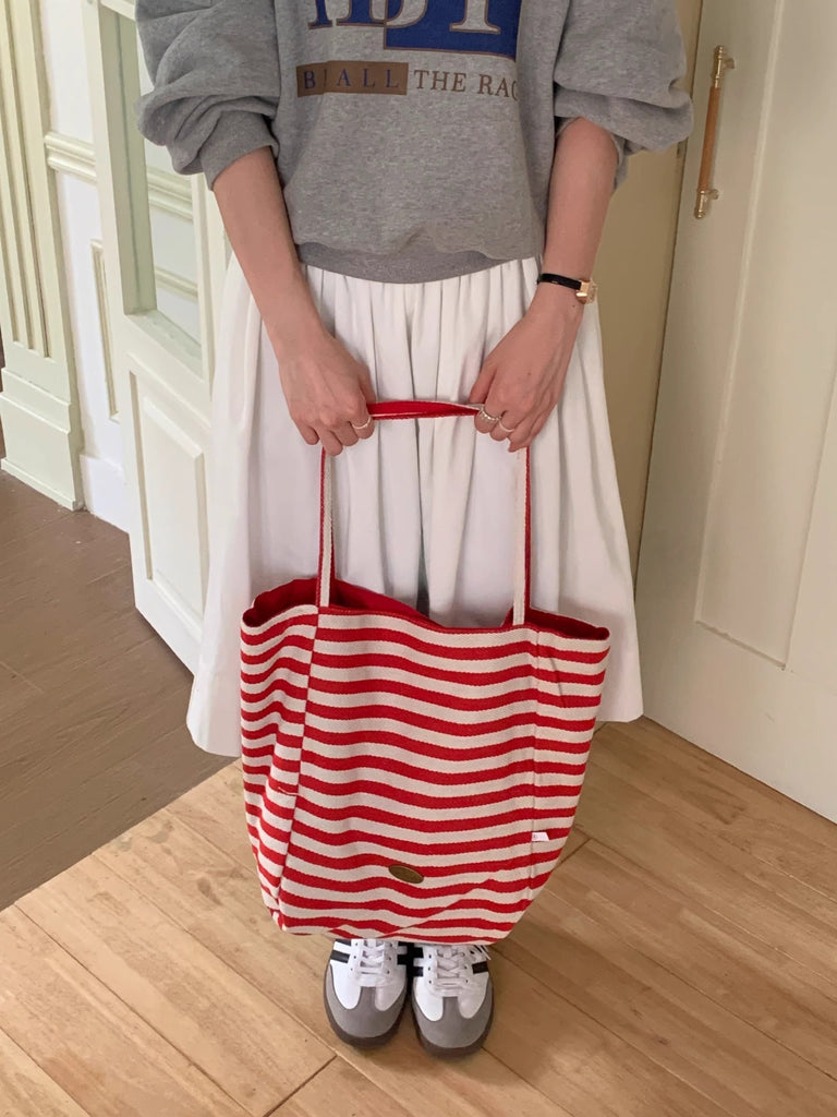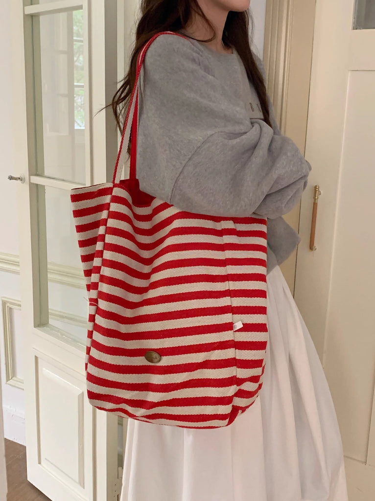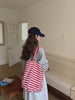 New Korean-Style Ins Striped Canvas Tote Bag - Casual, Single-Shoulder, Large-Capacity Shopping Tote